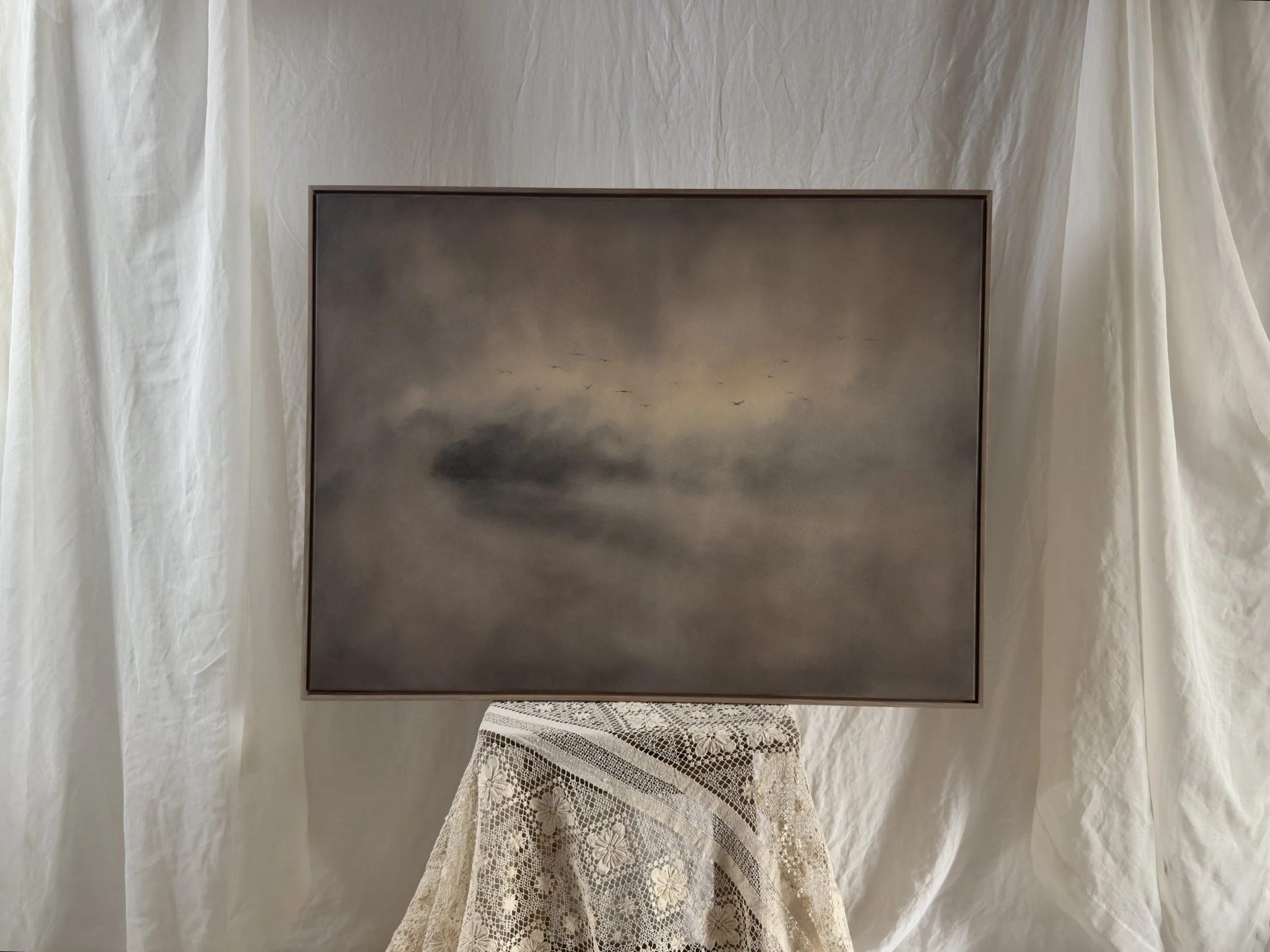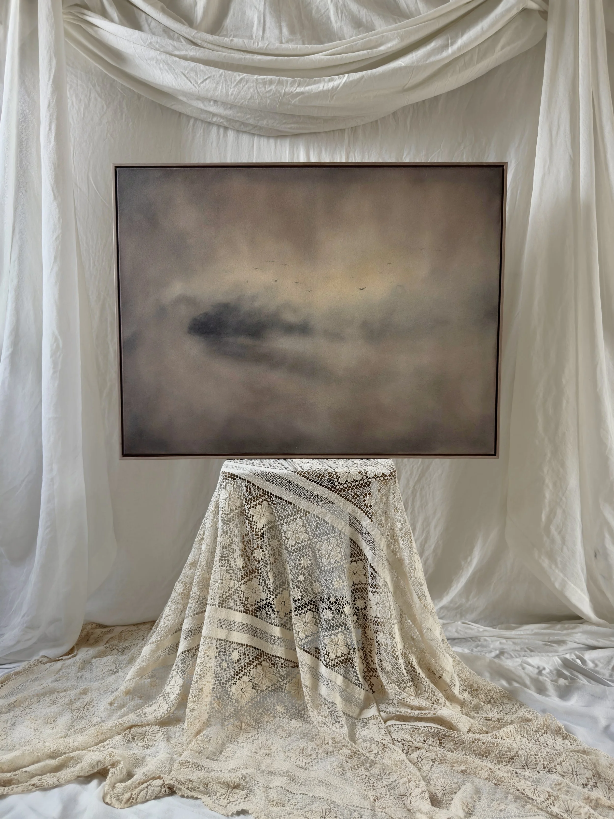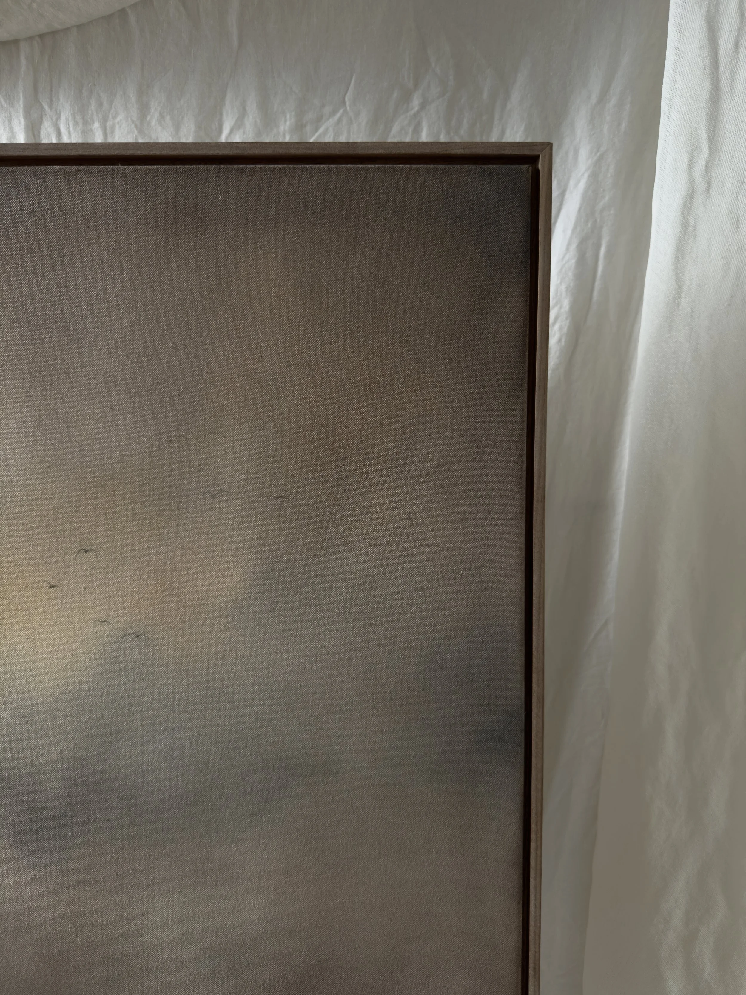 Painted with natural, handcrafted earth pigment paint, oak gall ink and pencil on raw canvas.