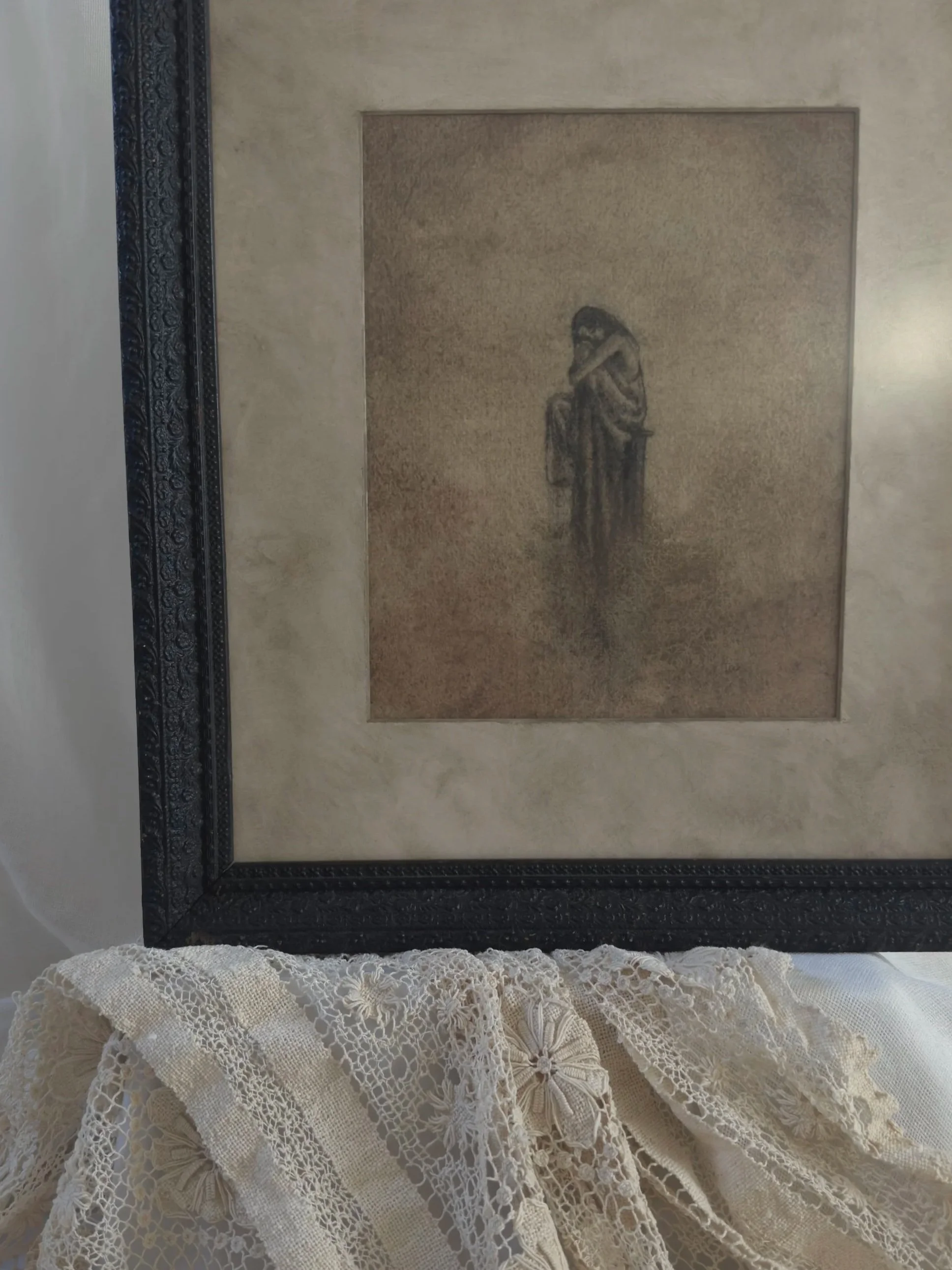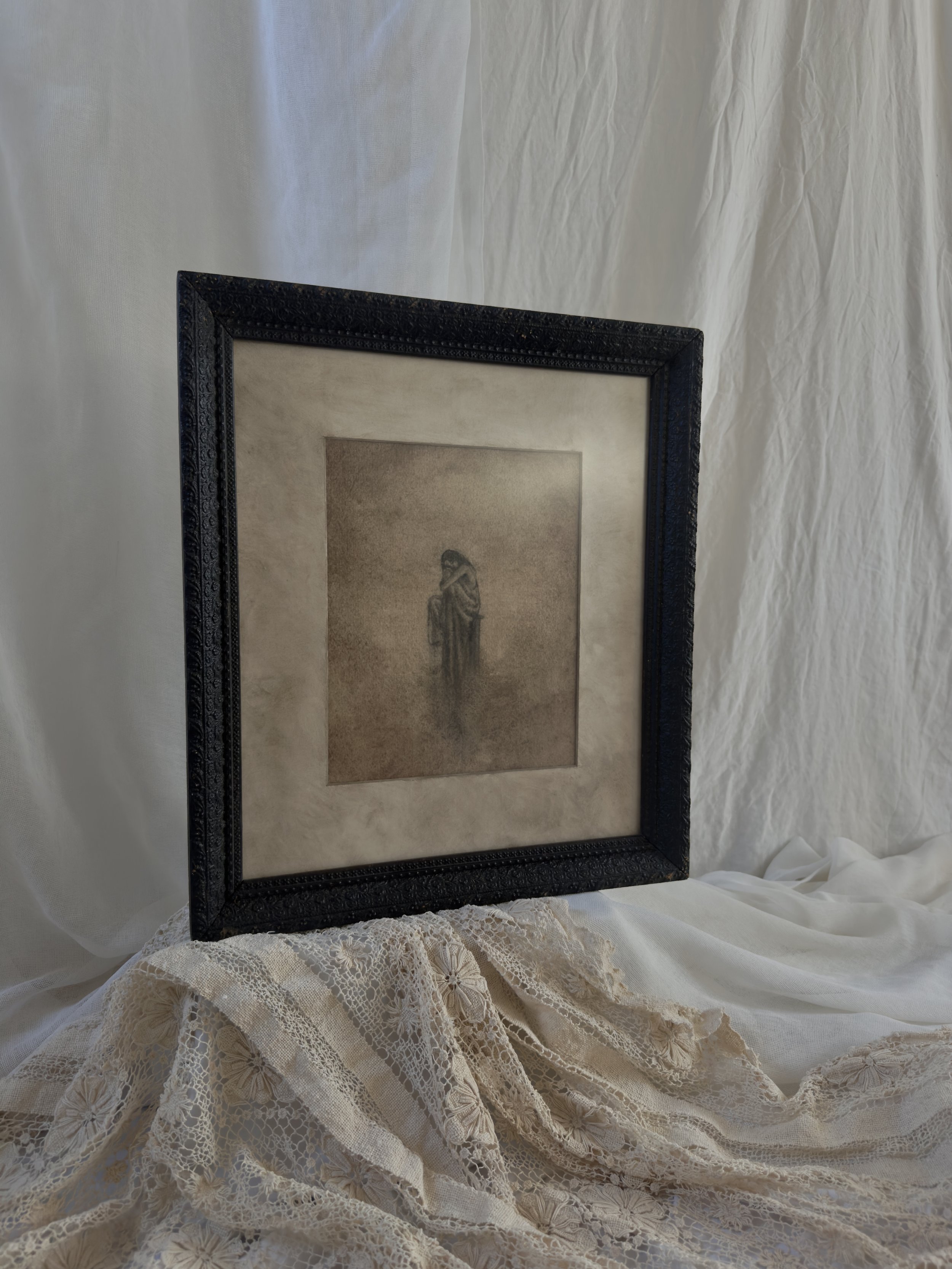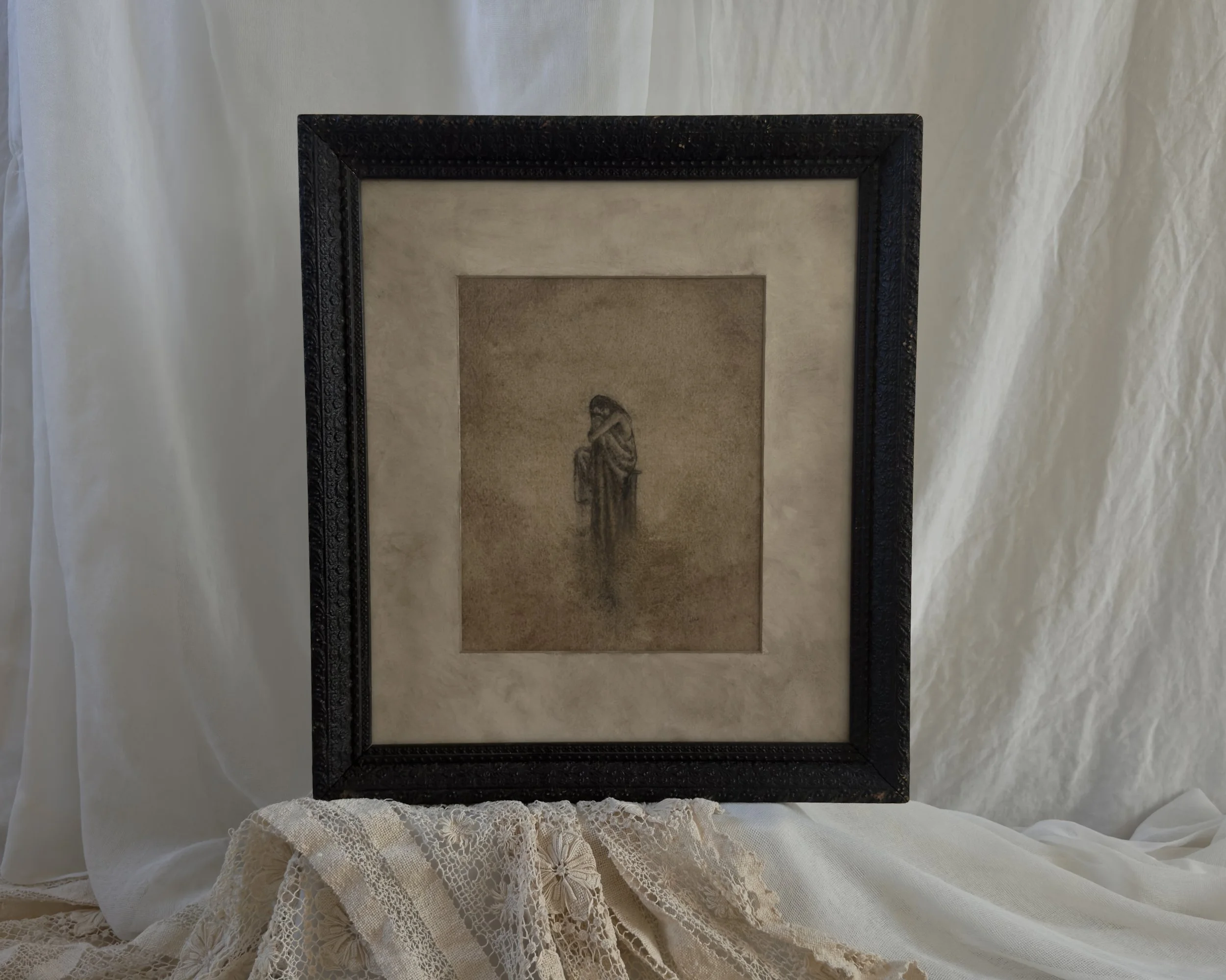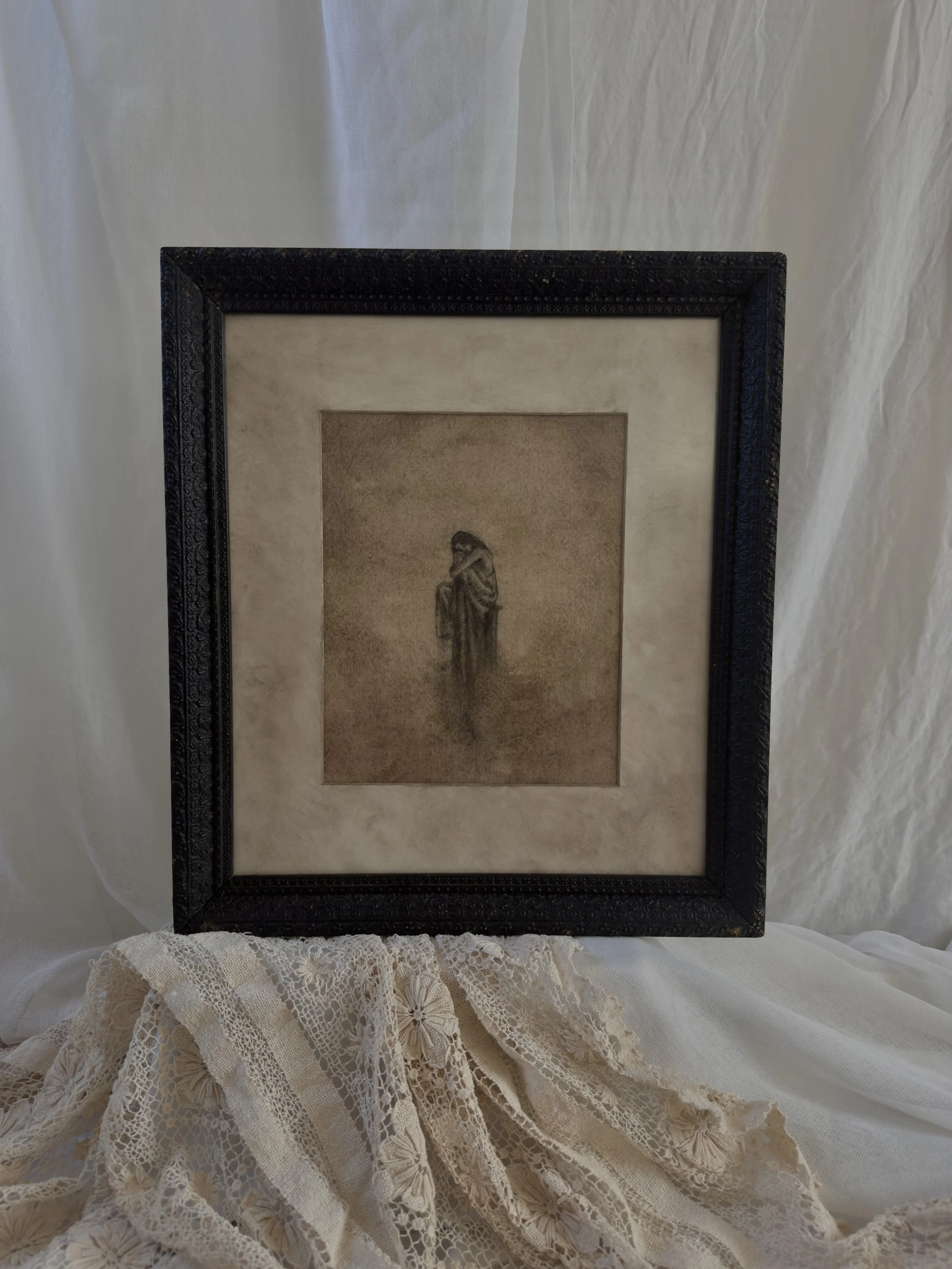 Framed in a one-of-a-kind vintage gesso frame.